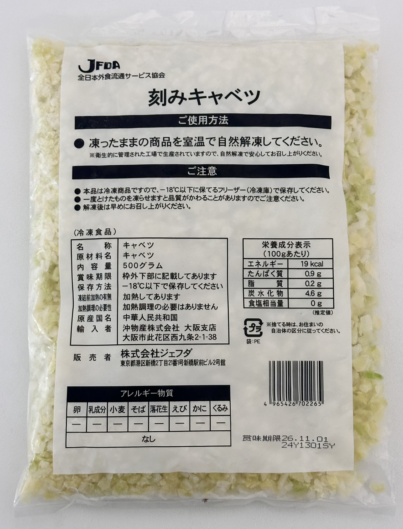 商品一覧野菜冷凍野菜そのままOK!刻みキャベツ 商品コード:5173 冷凍 そのままOK!刻みキャベツ 中国産 自然解凍でご使用いただけます。 約5mmカット※目安です 規格・入数 500g・20入 仕入先 JFDA 冷凍野菜一覧へ戻る