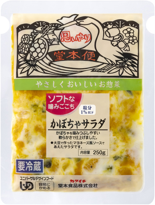 商品一覧乾物・チルド商品佃煮・惣菜ソフトな噛みごこち かぼちゃサラダ250g 商品コード:1713 チルド ソフトな噛みごこち かぼちゃサラダ250g UDF「容易に噛める」 かぼちゃ、レモン果汁 固形量250g 規格・入数 250g・30入 仕入先 堂本食品 佃煮・惣菜一覧へ戻る