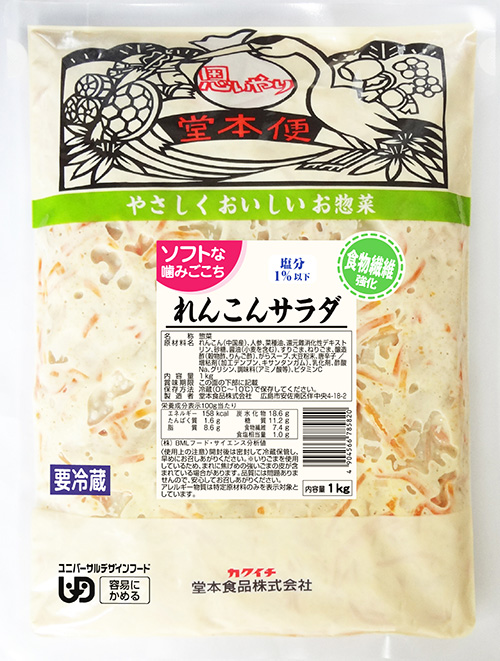 商品一覧乾物・チルド商品佃煮・惣菜ソフトな噛みごこち れんこんサラダ食物繊維強化1kg 商品コード:1718 チルド ソフトな噛みごこち れんこんサラダ食物繊維強化1kg UDF「容易に噛める」 れんこん、人参、すりごま、ねりごま 固形量1000g 規格・入数 1Kg・12入 仕入先 堂本食品 佃煮・惣菜一覧へ戻る