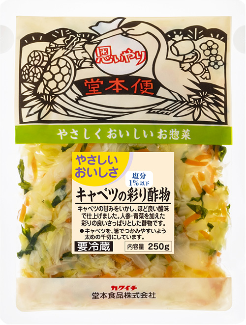 商品一覧乾物・チルド商品佃煮・惣菜やさしいおいしさ キャベツの彩り酢物250g 商品コード:1752 チルド やさしいおいしさ キャベツの彩り酢物250g キャベツ、人参、味付野沢菜 固形量180g 規格・入数 250g・30入 仕入先 堂本食品 佃煮・惣菜一覧へ戻る