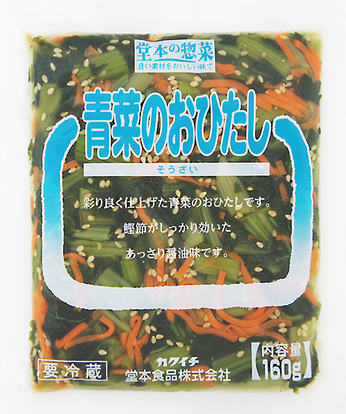 商品一覧乾物・チルド商品佃煮・惣菜青菜のおひたし 160g 商品コード:1767 チルド 青菜のおひたし 160g 塩抜き野沢菜、人参、いりごま 固形量130g 規格・入数 160g・60入 仕入先 堂本食品 佃煮・惣菜一覧へ戻る
