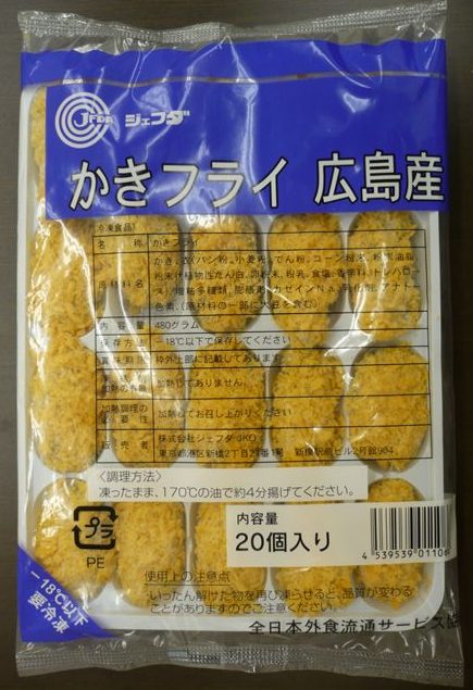 商品一覧揚げ物水産品フライ広島産かきフライ(カラーパン粉) 商品コード:7757 冷凍 広島産かきフライ(カラーパン粉) カキの水揚量日本一、広島県産のカキを使用しました。 規格・入数 25g×20ヶ・10入 仕入先 JFDA 水産品フライ一覧へ戻る